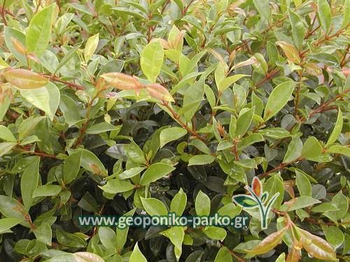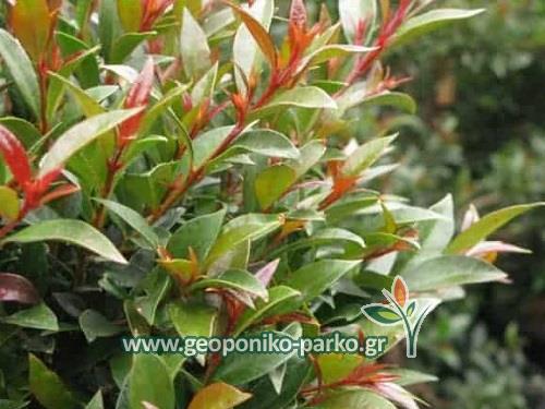 Αειθαλής θάμνος μέτριου ρυθμού ανάπτυξης, τελικό ύψος τα 3-4 m και διάμετρο έως 2 m. Έχει συμπαγή κόμη από γυαλιστερά, πανέμορφα φύλλα, που μοιάζουν με της κοινής μυρτιάς. Έχουν κοκκινωπή απόχρωση όταν είναι νεαρά και εξελίσσονται σε βαθυπράσινα όταν ενηλικιωθούν. Το καλοκαίρι παράγει μικρά, υπόλευκα άνθη που μεταμορφώνονται σε κόκκινους καρπούς. Αντέχει στην ξηρασία, χρειάζεται έδαφος με καλή αποστράγγιση και ευδοκιμεί σε παραθαλάσσιες περιοχές. Ανταποκρίνεται καλά στο κλάδεμα, άρα είναι φυτό ιδανικό για μπορντούρες και περιφράξεις. Προτιμά θερμοκρασίες σχετικά υψηλές, καθώς δεν αντέχει στην παγωνιά.
